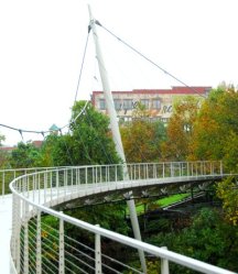 I caught this angle on the footbridge that conveys some of the sweeping arc it makes over the river.