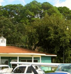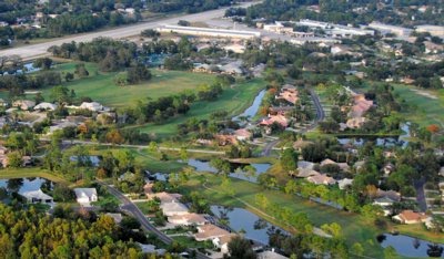 Our next stop was in Spruce Creek, FL for my FAA medical certificate. Now we’ve seen a few airports, and they’re all different. The one in Jekyll with its shrimp boats and golf carts was more different than most. But the one in Spruce Creek easily out-differents them all. It’s not just a runway, nor does it have the typical few aircraft hangars and a fuel pump. No, this is an entire small town for pilots and their planes. We taxied along one of the main “streets” with car lanes on both sides of us and all the typical resources of a small town just beyond the car lanes. Say you need cash – just taxi up to the bank. In my case, we taxied up to the doctor’s office. I guess the closest thing I can think of is the typical movie western town, where hombres ride up to a business and tie their horse outside. If this place were in Santa Barbara, we’d wish we could afford one of the many houses that also connect via taxiway to the runway. The humid heat helped us taxi past the real estate signs.