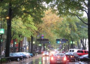Downtown has slow traffic and wide sidewalks, with an elegant canopy of trees.