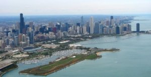 Today’s flight started just north of Chicago where we saw some remarkable mansions, then turned south along the lakeshore to look down and wave at the people who live in the manses. Before small planes, we used to always go to the tops of such buildings to look around. Now even the Sears tower near this one, seems quaint somehow.
